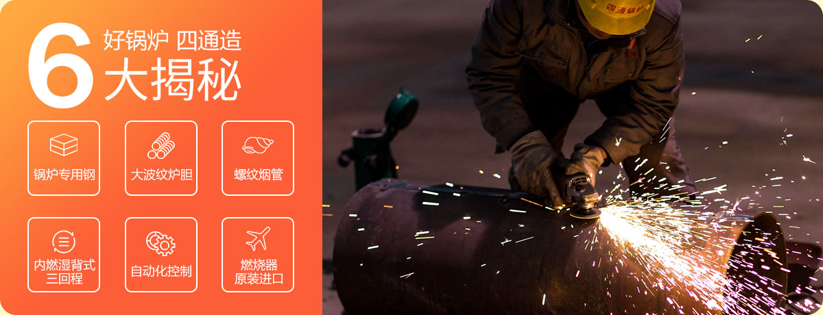 采用下置波纹炉胆高温烟气经波纹炉胆回火室依次冲刷第二及第三回程烟管,由后烟室烟囱排入大气,锅炉热效率高,设计经典