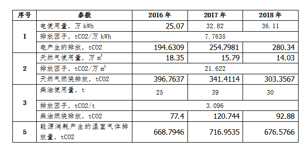 1、生产过程能源消耗产生的温室气体排放情况盘查: