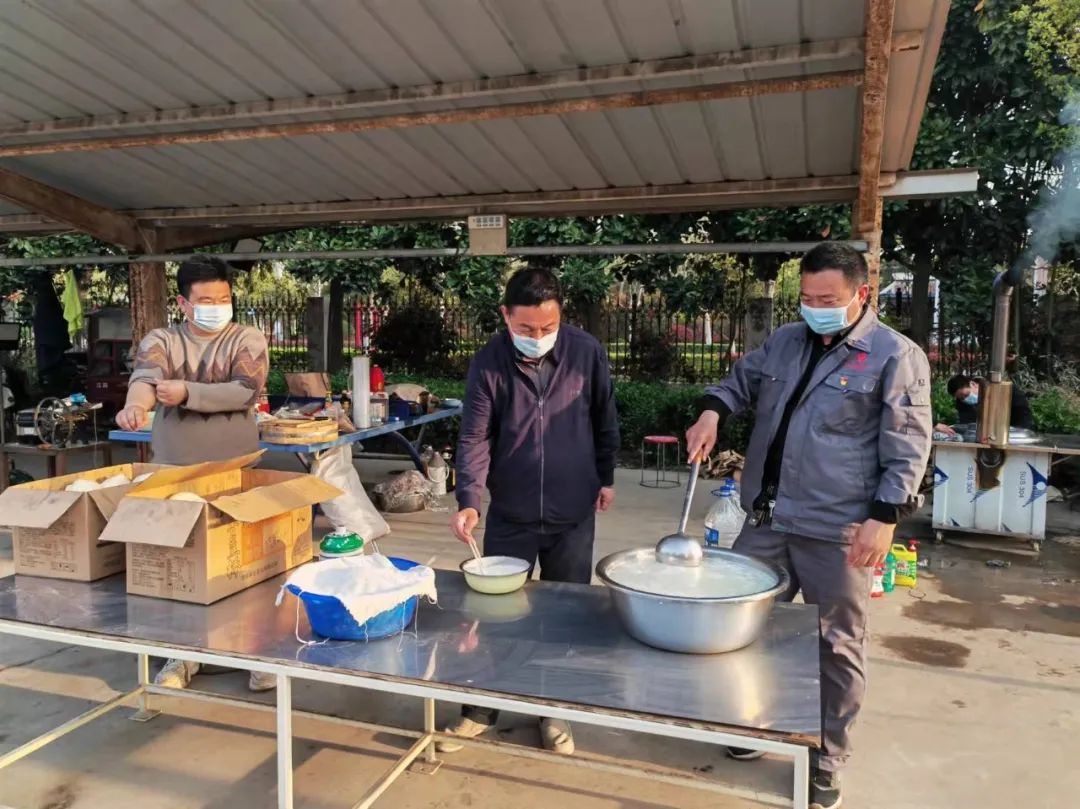 为了保障员工饮食,克服种种困难,才在紧要关头采购到部分紧缺的生活物资,在公司疫情防控领导小组成员与在厂女职工的全力配合下,搭建起了临时的“战疫厨房”,大家齐心协力,共克时艰,确保员工每一顿饭都可以吃饱、吃好。