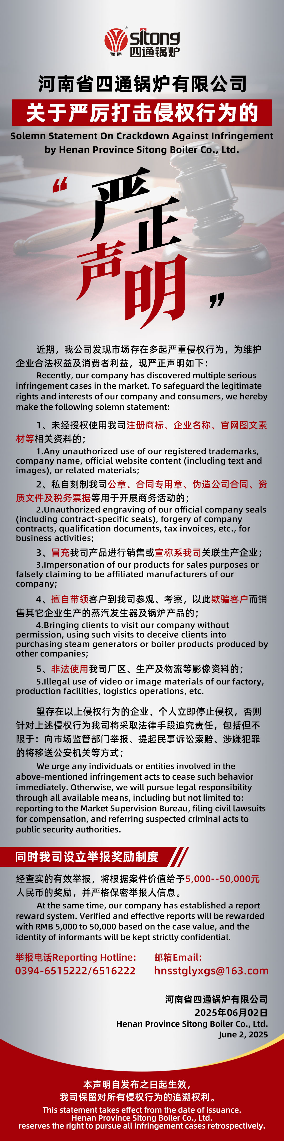 四通锅炉为您提供低氮锅炉、贯流锅炉、燃油气锅炉、电加热锅炉、生物质锅炉、的选购和全方位的解决方案;您可以致电全国服务热线 0371-58576888、销售电话 0371-58576999 进行产品咨询或来访预约,我们将竭诚为您服务!